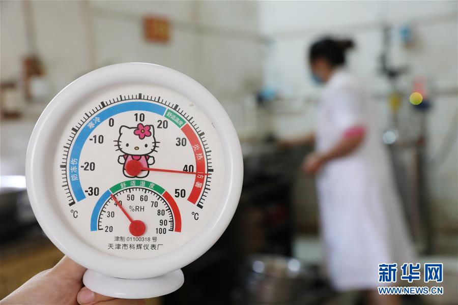 8月9日,夏海燕工作的煎药室的室温超过40摄氏度。新华社发(徐宏星 摄)