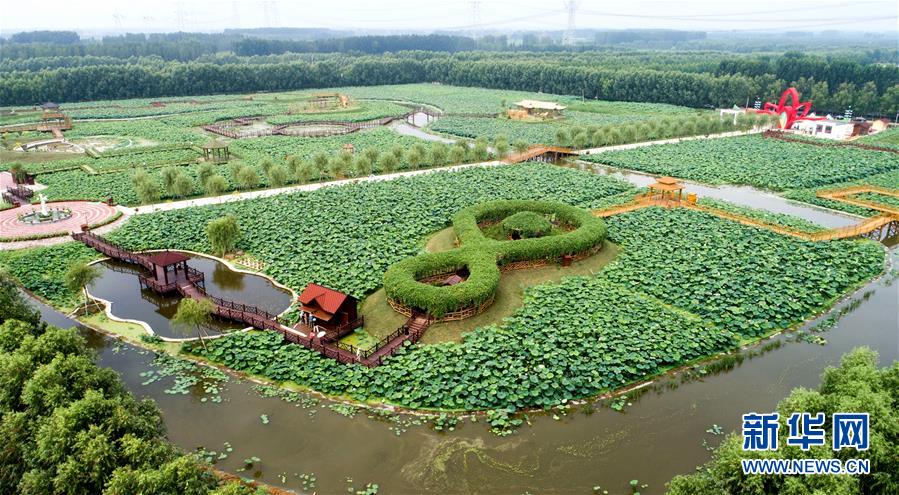 河北香河县刘宋镇庆功台村万亩荷塘景区(8月10日无人机拍摄)。近日,河北香河县刘宋镇庆功台村万亩荷塘景区的荷花竞相绽放,吸引游客和市民前来观赏。 新华社记者 王晓 摄