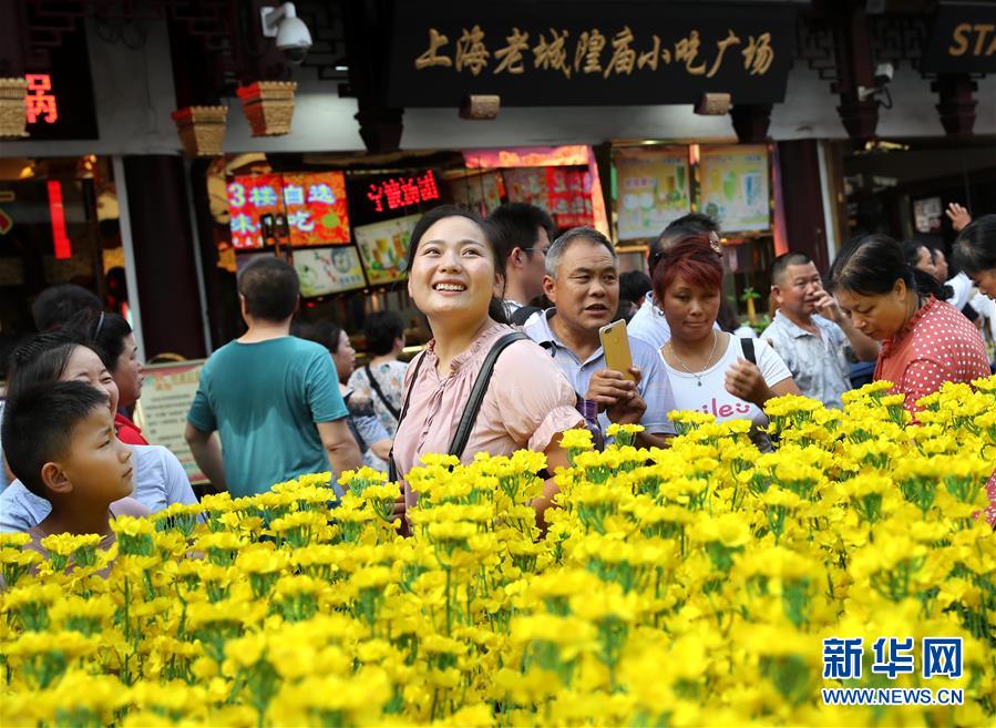 8月10日,在豫园展演活动现场打造的“罗平油菜花田”场景吸引游客驻足。 新华社记者刘颖摄