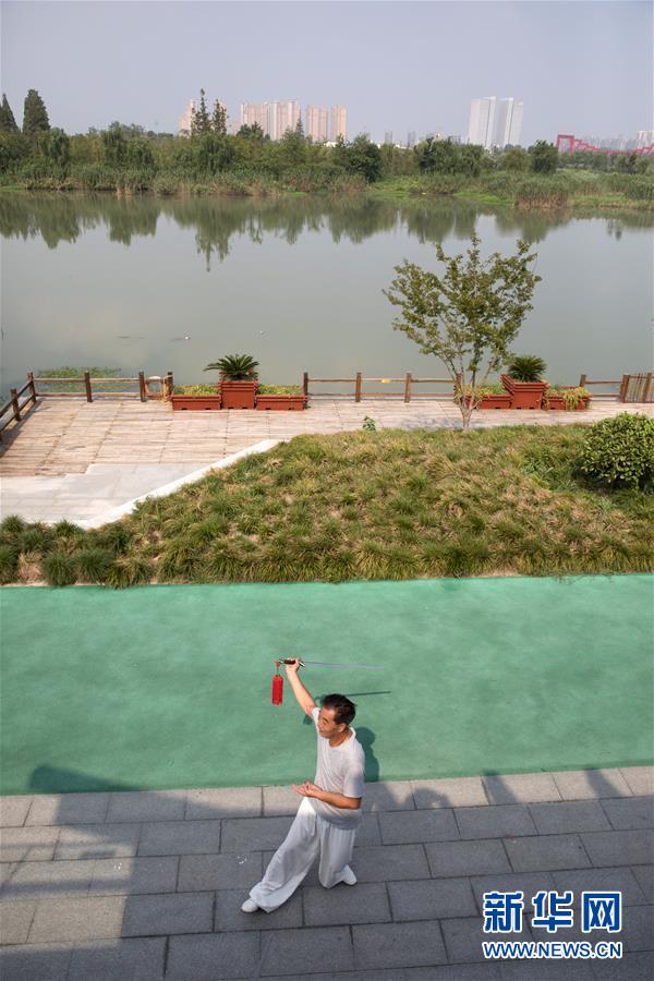 市民在三湾湿地公园锻炼(8月10日摄)。 新华社记者 金立旺 摄