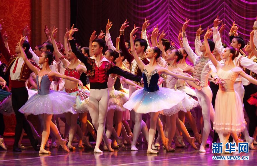 8月11日,参赛选手集体登台等待比赛结果。当日,第六届上海国际芭蕾舞比赛落幕。中国选手史越、敖定雯分获成人组男、女金奖,中国选手李偲旖获得女子少年组金奖。新华社记者 任珑 摄