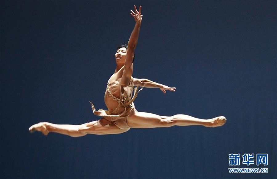 8月11日,获得成年组男子金奖的史越表演独舞。当日,第六届上海国际芭蕾舞比赛落幕。中国选手史越、敖定雯分获成人组男、女金奖,中国选手李偲旖获得女子少年组金奖。新华社记者 任珑 摄