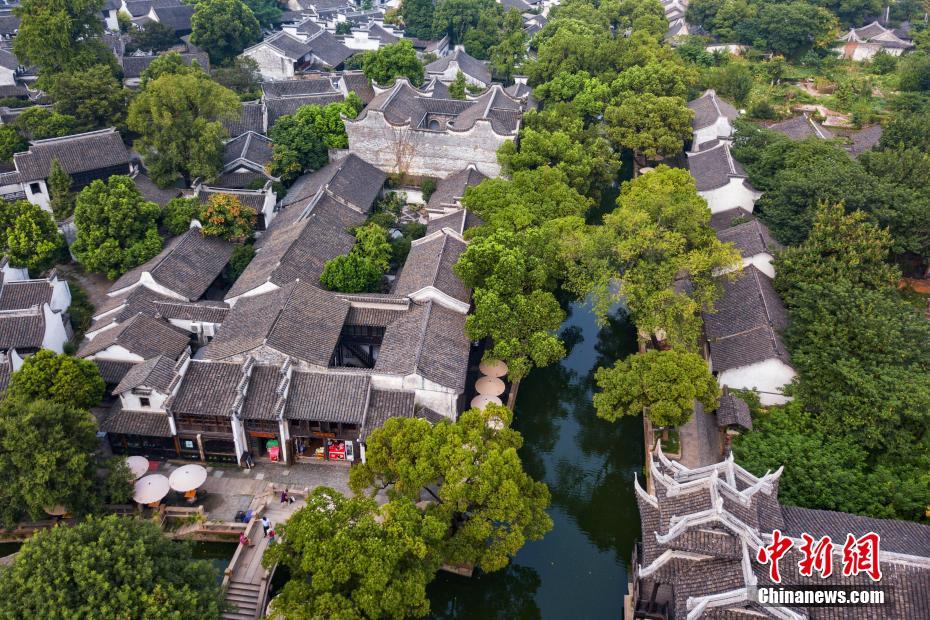 8月11日,航拍无锡惠山古镇,典型的江南民居错落有致,透出古朴韵味。据悉,惠山古镇有无锡历史文化露天博物馆的美誉,古镇内排列着80个姓氏的118座祠堂,构成了独特的“祠堂群”景观。中新社记者 泱波 摄