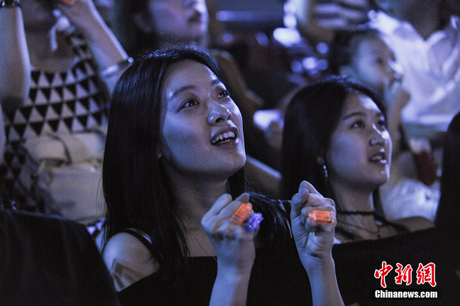 粉丝给支持队伍加油。 中新网记者 翟璐 摄