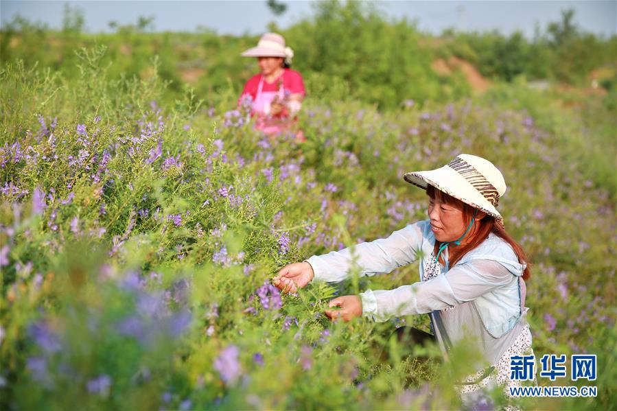 8月12日,河北省内丘县柳林镇农民在采收黄芩。 新华社记者 牟宇 摄