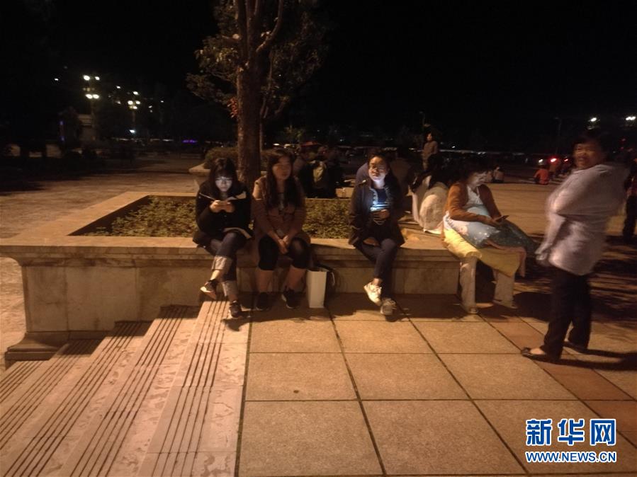 8月13日,在云南玉溪市通海县,民众在地震发生后来到新区广场(手机拍摄)。 新华社发(通海县委宣传部供图)