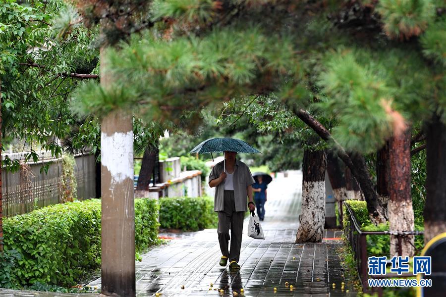 8月14日,在吉林省长春市朝阳区东中华路,市民撑伞出行。 8月13日至14日,吉林出现明显降雨天气,中东部地区降雨量较大,部分地区出现暴雨和大暴雨。截至14日8时,吉林共出现22站大暴雨,189站暴雨,376站大雨,部分水库超汛限水位运行。 新华社记者张楠摄