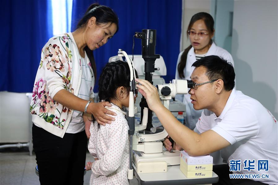8月14日,天津医科大学眼科医院的刘勃实医生(右一)为患者诊治。新华社发(刘东岳 摄)