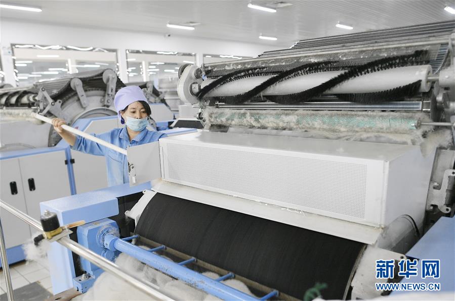 宁夏伊兴绒业公司工人在对羊绒进行筛选加工(6月23日摄)。 新华社记者 王鹏 摄