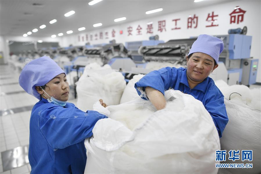 宁夏伊兴绒业公司工人在打包羊绒(6月23日摄)。 新华社记者 王鹏 摄