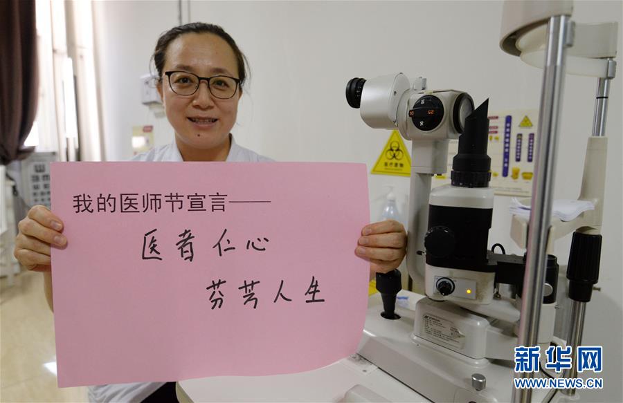 8月16日,河北省邯郸市第三医院眼科的一名医生展示其书写的“医者仁心 芬芳人生”。当日,河北省邯郸市第三医院举行“我的医师节宣言”活动,医务工作者们纷纷说出心里话,迎接8月19日首个“中国医师节”。新华社发 郝群英 摄
