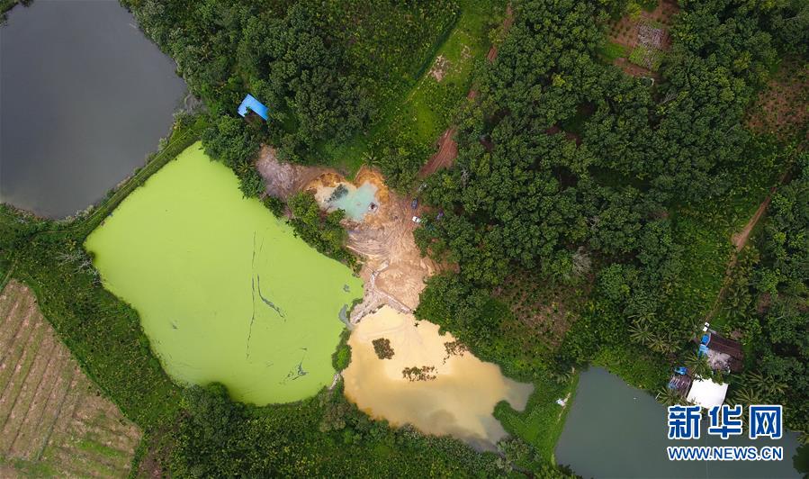 万宁市国营东和农场先锋队一处非法采砂点,环境破坏情况严重(7月30日无人机拍摄)。新华社记者杨冠宇 摄