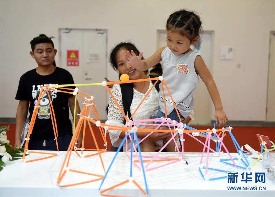 8月16日,一名小朋友在2018世界机器人大会上体验一款益智玩具。 恰逢暑假,正在北京亦创国际会展中心举行的2018世界机器人大会吸引了众多青少年前来“扎堆”。此次大会于8月15日至19日举行。 新华社记者 罗晓光 摄