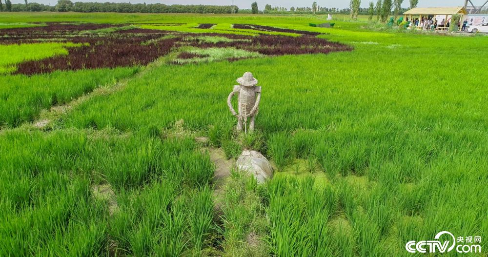 这片稻田画产业示范基地名为“绿梦飞扬”,始建于2015年,由观光塔和稻田画两部分组成,游客通过观光塔可在不同角度、不同高度俯瞰稻田画全景。稻田画总面积超过120亩,主要由“功夫熊猫”“战狼”“纳达齐乡”“我爱北京天安门”等多幅画组成。