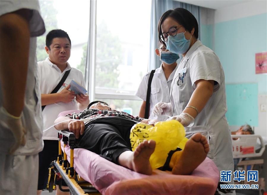 8月19日,北京天坛医院急诊科的医生在查看病人情况。 当日是我国首个“中国医师节”。医师们坚守岗位,在繁忙的工作中度过节日。 新华社记者 张晨霖 摄