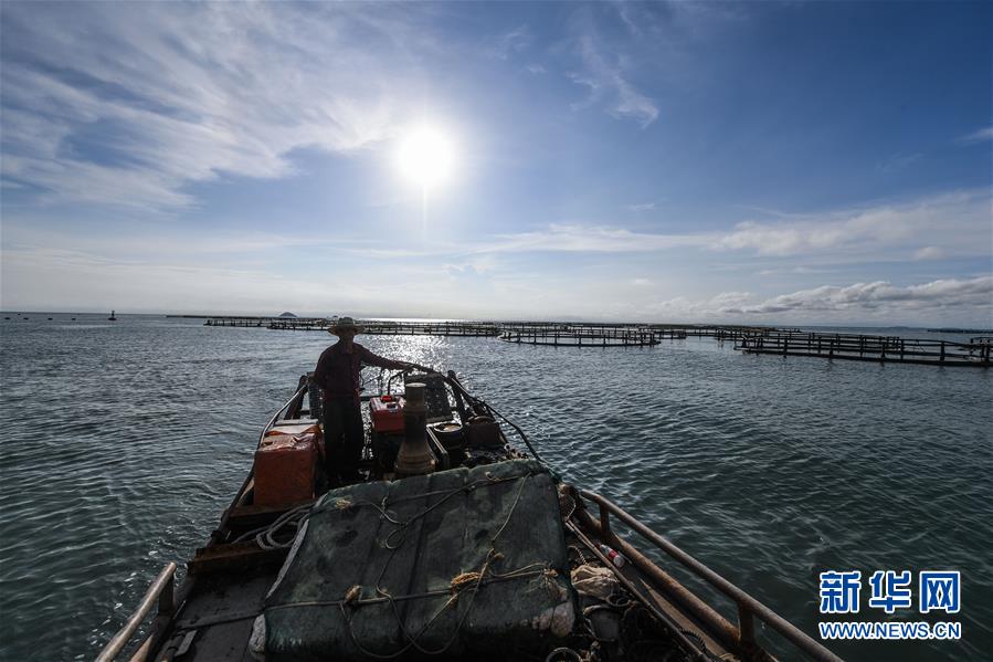 8月18日,南麂岛海域的“海上牧场”养殖区内,渔民驾驶渔船进行养殖作业。 进入8月,浙江省温州市平阳县南麂镇海域上大片的大黄鱼、贻贝等特色海产品养殖区域迎来丰收季节,养殖户们驾驶渔船在养殖区海域进行打捞收获,在碧海蓝天下构成了一幅“海上牧场”的美丽丰收景象。 近年来,南麂镇政府引导渔民养殖户充分发挥“靠海吃海”的资源优势,大力发展海洋养殖经济和海岛旅游经济,实现了南麂由“生态美”向“产业美”,“产业美”向“经济美”的转变。同时该镇坚持以大黄鱼、贻贝等为特色产业支撑,精准发展高效海洋养殖业,重点培养一批新型职业渔民,依靠专业技术支持,实现深海仿生养殖,让好生态造就好品质,重点打造南麂养殖品牌,组建营销网络,拓展特色海产品市场。 新华社记者 徐昱摄