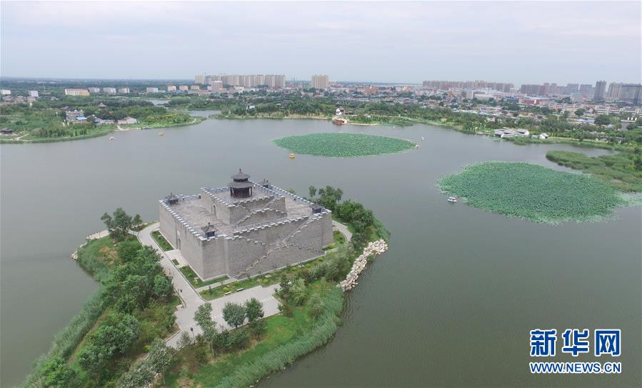 8月19日无人机拍摄的河北省河间市瀛州公园。 河北省河间市瀛州公园位于河间市城区中南部,原来是废弃多年的污水坑塘,生活垃圾和建筑垃圾都曾向这里倾倒,带来环境污染等问题。2012年以来,河间市大力实施城区生态优化工程,打造城市生态“绿肺”,把昔日的废弃污水坑塘建成一座水域面积44公顷、绿地面积51公顷的生态公园,成为市民和游客休闲游玩的好去处。 新华社记者朱旭东摄