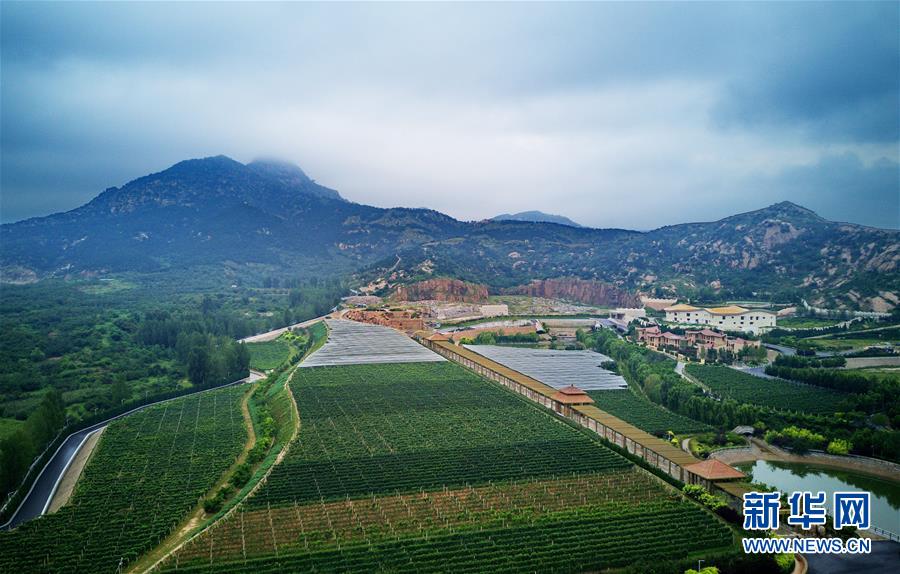 这是昌黎县在废弃矿坑基础上建设的一家葡萄酒庄(8月19日无人机拍摄)。 近年来,河北省昌黎县坚持生态优先的原则,采用植草带、挂网喷播等生态修复技术,对采石遗留的矿坑和被破坏的山体实施修复工程,既解决了植被破坏、水土流失等生态问题,又实现了经济效益。 新华社记者杨世尧摄