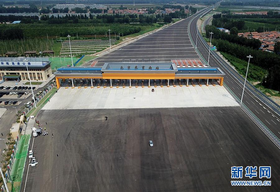 8月20日,车辆通过首都地区环线高速北京采育南站(无人机拍摄)。 新华社记者 张晨霖 摄