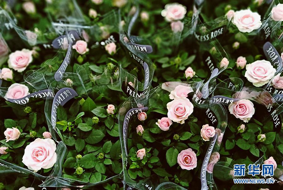 银川爱必达花卉产业示范园内经过包装的玫瑰。