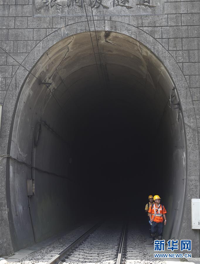 8月20日,护路职工在银洞坡隧道内进行检查。 新华社记者 刘续 摄