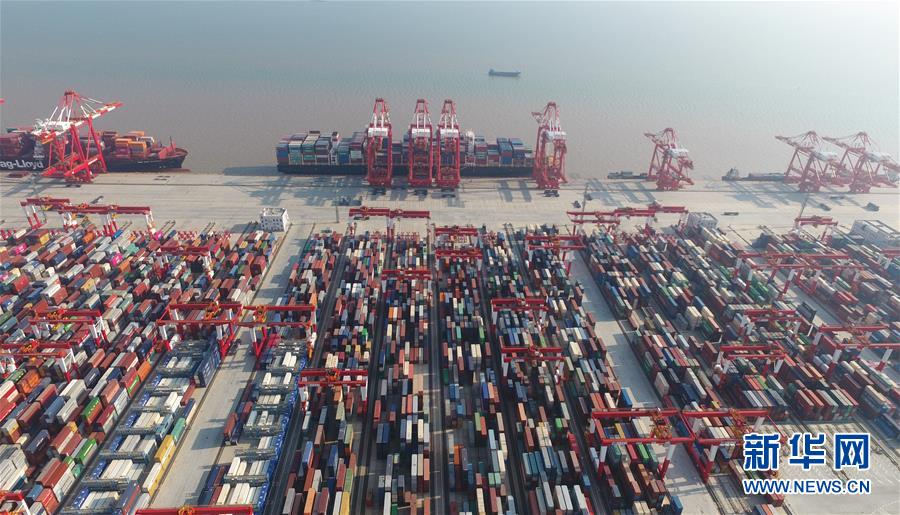 这是上海洋山深水港四期自动化码头(7月25日无人机拍摄)。新