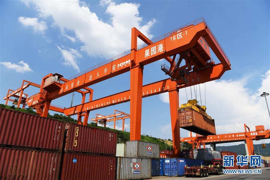 这是重庆果园港装载作业现场(8月20日摄)。 新华社记者王全超摄