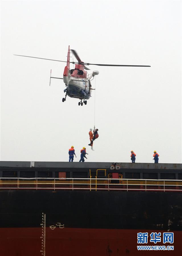 当日,由河北、天津、山东三地海事部门共同主办的2018年渤西三地海上搜救暨溢油应急联合演习在河北沧州黄骅港1号锚地附近海域举行。演习内容包括直升机转移伤病人员、搜寻救助落水人员、扑灭船舶火灾、溢油处理等,15家相关单位的13艘船艇、1架直升机和200余人参加演习,旨在构筑海上应急防线,有效应对三地毗连海域海上突发事件。 新华社记者马宁摄