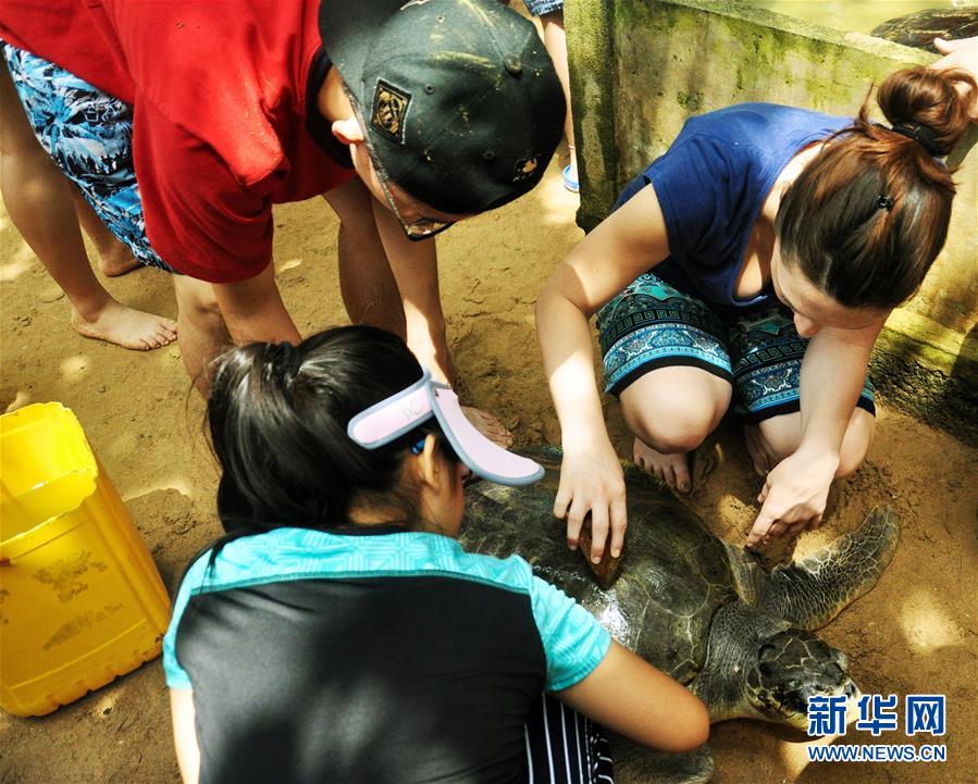 这是2017年在斯里兰卡巴勒皮蒂耶海龟保育中心拍摄的志愿者给海龟刷背。 如果以“绿色”为主题,可以收获中国与“一带一路”沿线国家共同谱写的很多动人故事。 生长于同一颗星球、呼吸着同一片空气。“绿色、低碳、循环、可持续”,中国正通过绿色“一带一路”建设,与沿线国家一道守护绿水青山,为造福人类共有家园、构建人类命运共同体不懈努力。 新华社发