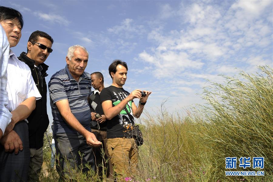 参加阿拉伯国家防沙治沙技术培训班的学员在宁夏盐池县毛乌素沙地边缘参观(2013年9月2日摄)。 如果以“绿色”为主题,可以收获中国与“一带一路”沿线国家共同谱写的很多动人故事。 生长于同一颗星球、呼吸着同一片空气。“绿色、低碳、循环、可持续”,中国正通过绿色“一带一路”建设,与沿线国家一道守护绿水青山,为造福人类共有家园、构建人类命运共同体不懈努力。 新华社记者李然摄