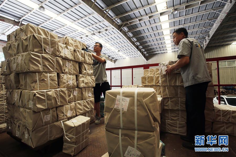 8月22日,山东省潍坊市新华书店工作人员正在清点搬运即将送往中小学校的新学期课本。 新华社发(张驰 摄)