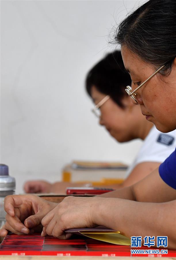 8月22日,河南安阳方舟礼品火柴厂的员工在为火柴盒贴磷。