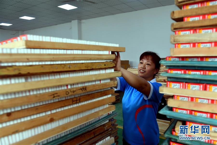 8月22日,河南安阳方舟礼品火柴厂的员工在摆放填装好的火柴。新华社记者 李嘉南 摄