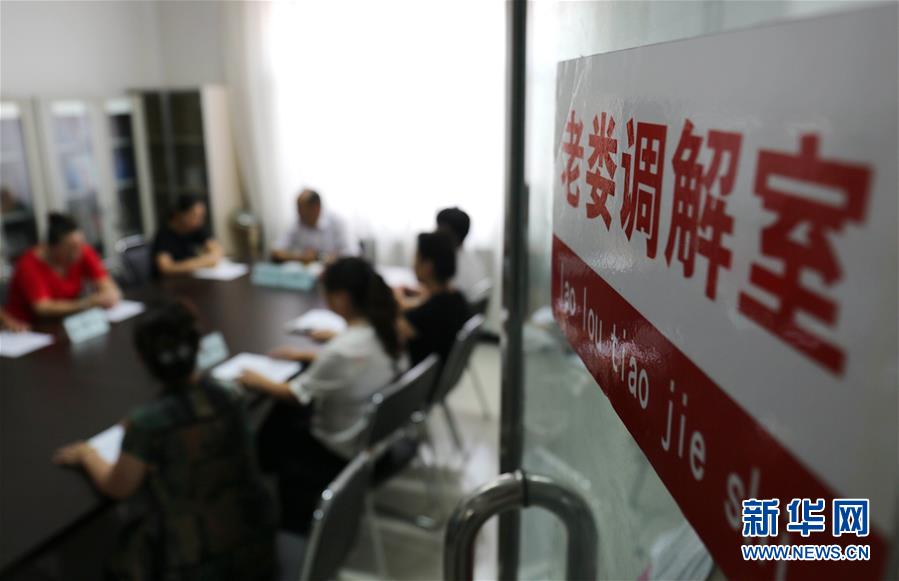 8月22日,居民来到“老娄调解室”里参加调解。 新华社发(刘环宇 摄)