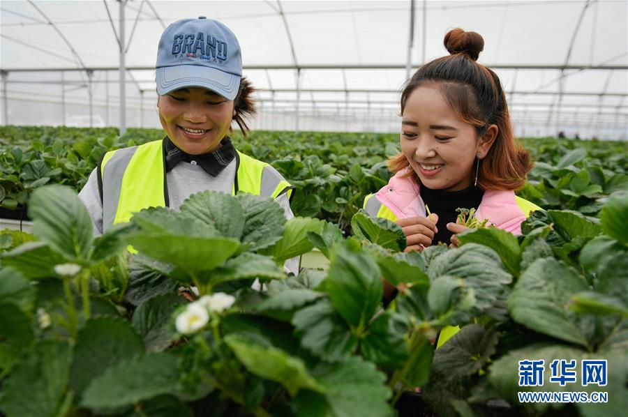 西藏山南市扎囊县桑耶镇的卓玛(左)和央宗是职业技术学校毕业的学生,目前在江平农业高架草莓种植基地内实习(7月23日摄)。 新华社记者刘东君摄