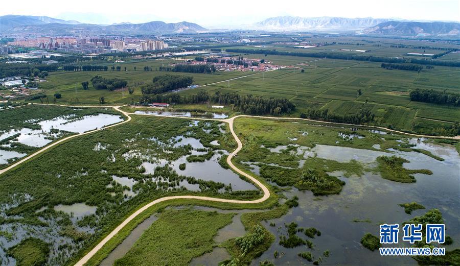 8月22日无人机拍摄的广灵县壶流河湿地。
