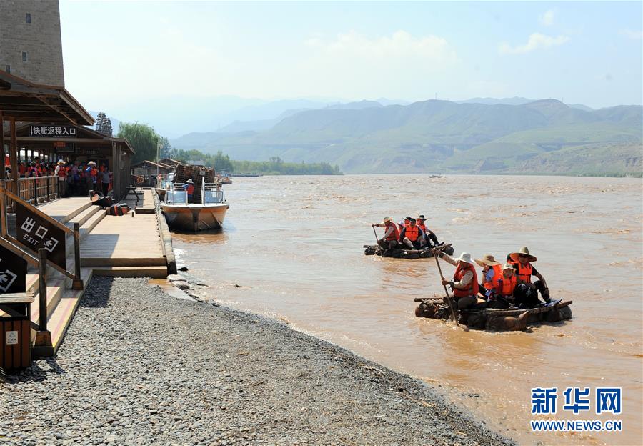 8月22日,游客在中卫市沙坡头旅游景区乘坐羊皮筏子游览。沙坡头旅游景区因地制宜发展沙漠旅游,旺季日接待游客量达两万人次。 新华社记者 任鹏飞 摄