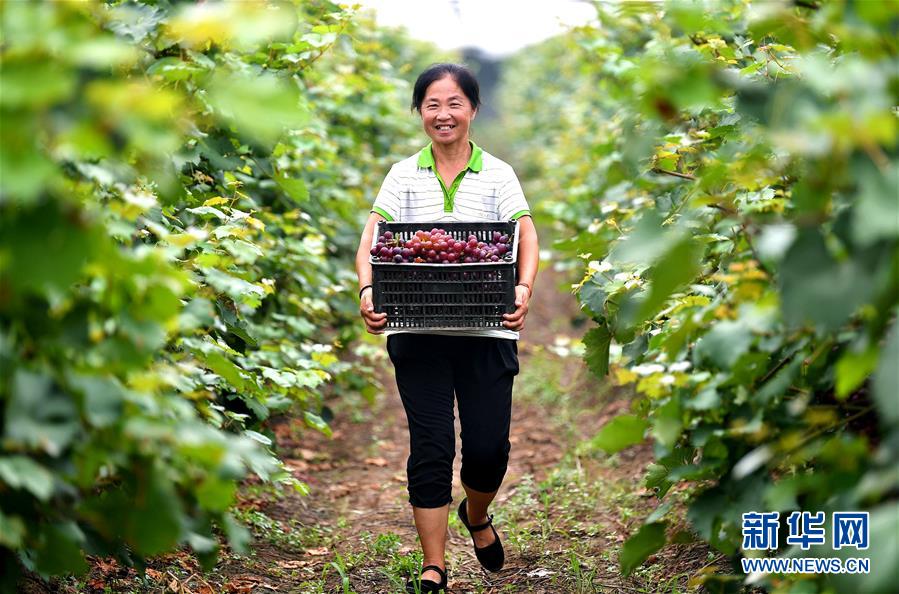 8月23日,在河北省廊坊市安次区葛渔城镇葡萄种植基地,村民在搬运葡萄。