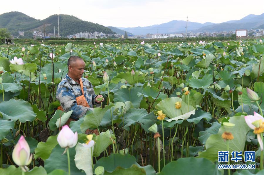 8月23日,建瓯市吉阳镇吉阳村村民葛永祥在采摘莲子。