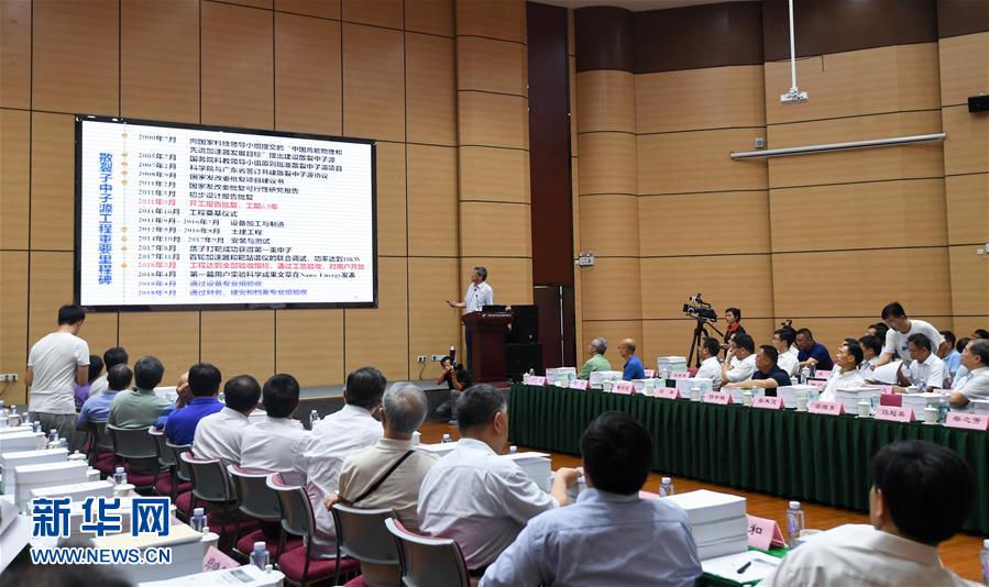 8月23日,在广东东莞市大朗镇,中国散裂中子源工程总指挥、中国科学院院士陈和生在中国散裂中子源国家验收会上介绍中国散裂中子源有关情况。