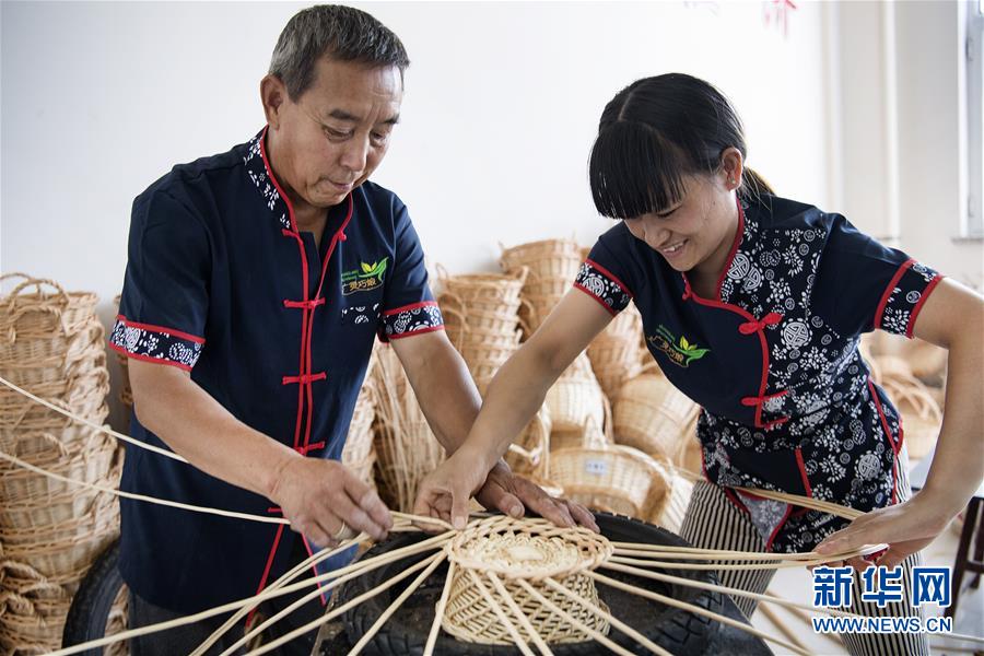 8月23日,贫困户白忠宝、白云燕父女俩在巧娘宫手工编织合作社编织工艺品。女儿白云燕是聋哑人,心灵手巧,父女俩每天的收入超过150元。 今年48岁的刘金萍是山西省大同市广灵县斗泉乡后山窑村村民,自幼喜欢编织。2005年,刘金萍带领村里13名妇女,从一个手工作坊做起,不断为当地农村妇女提供免费培训和就业平台,并于2016年成立巧娘宫手工编织专业合作社,基本实现了“家门口办厂、培训一人就业一人”的目标,直接带动645名贫困妇女脱贫增收。 新华社记者陶明摄