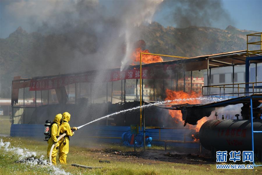 8月24日,消防员参加应急演练。 新华社记者 邹予 摄