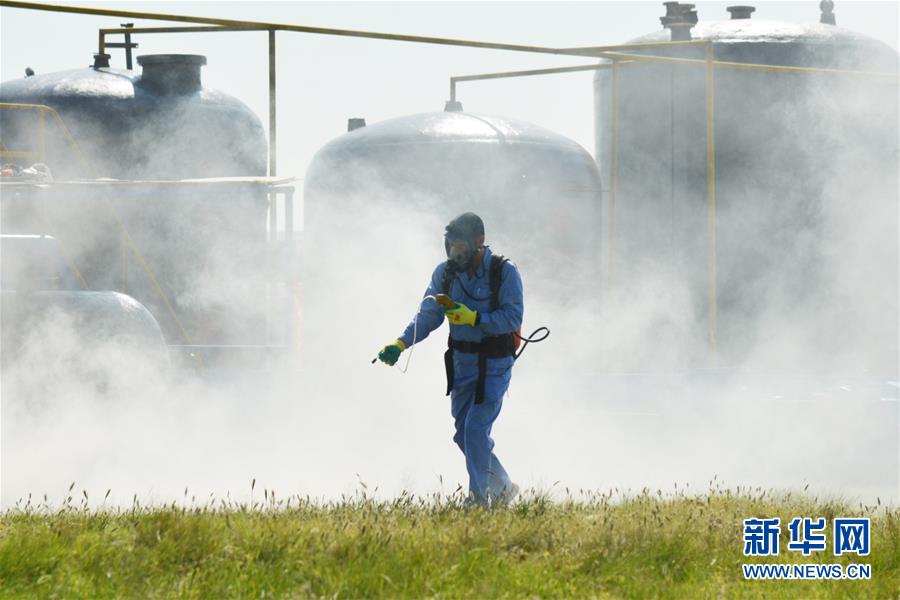 8月24日,环境监测人员参加应急演练。 新华社记者 邹予 摄
