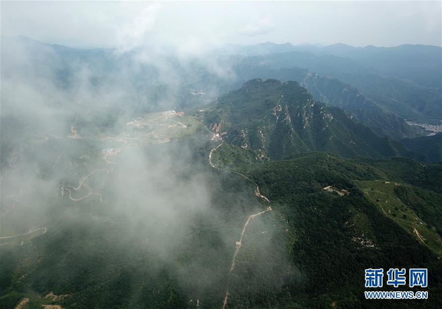 崇山峻岭中的明长城东沟段(8月22日无人机拍摄)。 新华社记者罗晓光摄