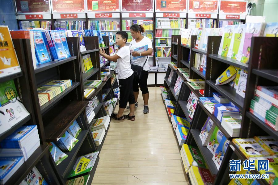 开学在即,江苏省常州市许多家长带着孩子来到书店选购文具和教辅书籍,为新学期开学作准备。 新华社发(陈暐 摄)