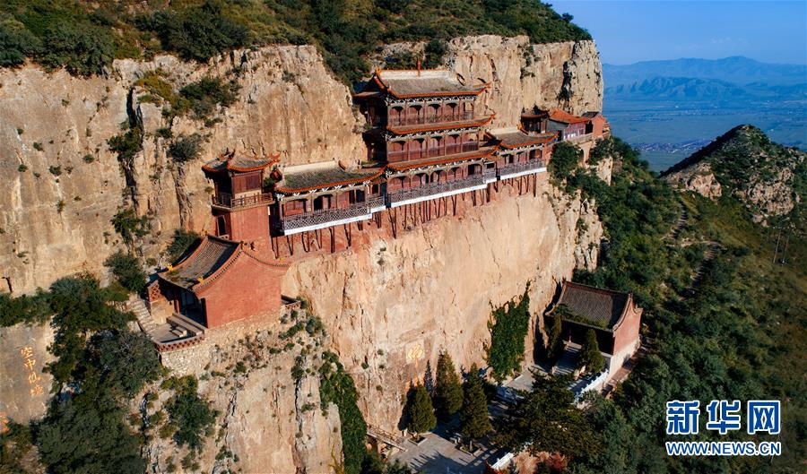 8月24日无人机拍摄的广灵县圣泉寺。 新华社记者 陶明 摄
