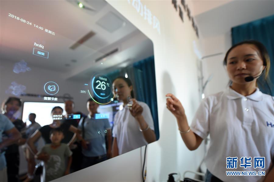8月24日,“智慧别墅”工作人员展示“智慧镜”的功能。 新华社记者 唐奕 摄