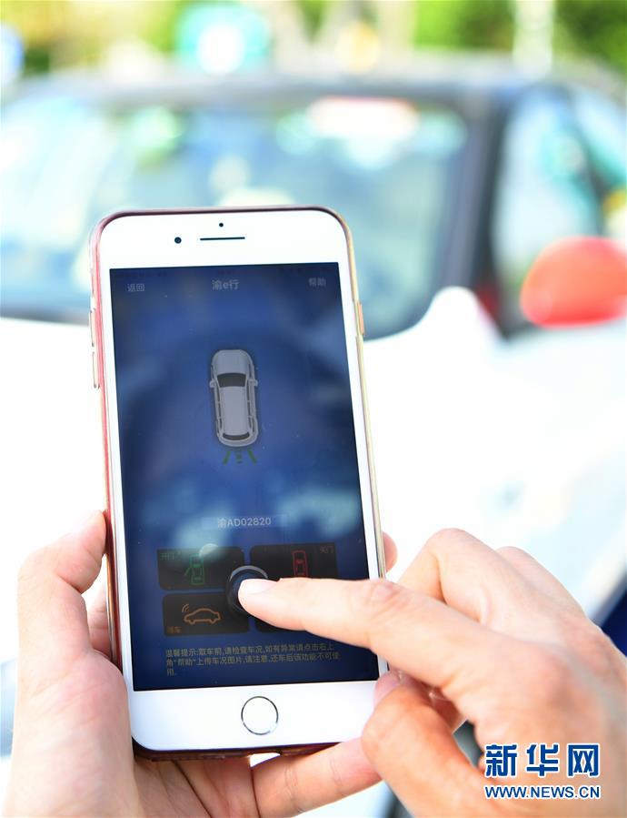 8月24日,市民使用“渝e行”租用电动汽车。 新华社记者 王全超 摄