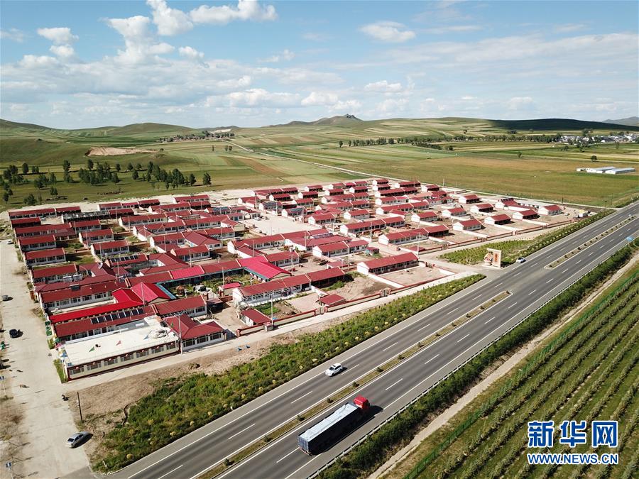 这是8月24日拍摄的丰宁满族自治县大滩镇依托坝上景区发展起来的旅游新村(无人机拍摄)。