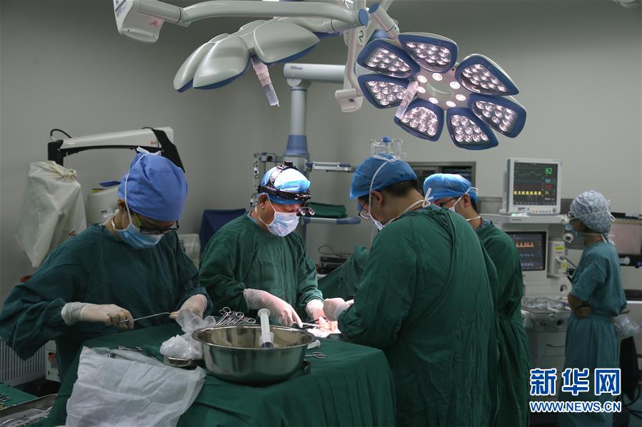 在位于安徽合肥的中国科学技术大学附属第一医院,医生将李洪彦捐献的肾脏移植给受捐者(8月22日摄)。新华社发(黄歆摄)